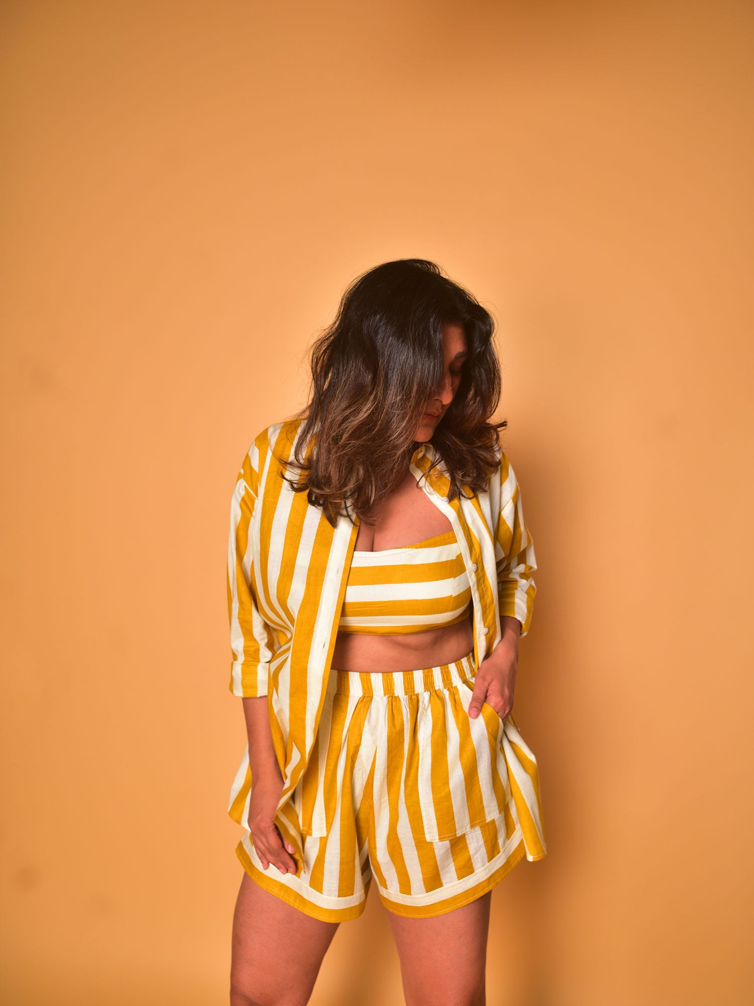WhySoBlue strictly follows Zero Waste Production in an effort to reduce fabric wastage that ends up in landfills. The fabrics that are uses are sourced directly from manufacturers over the country to empower artisans, ensuring they receive fair compensation for their products. The leftover fabric scraps from production are separated by hand, with the larger pieces being saved up to make pockets, piping, cloth buttons and other detailing.
